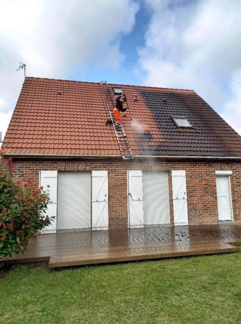 vorher und nachher Reinigung Dach sika 715w
